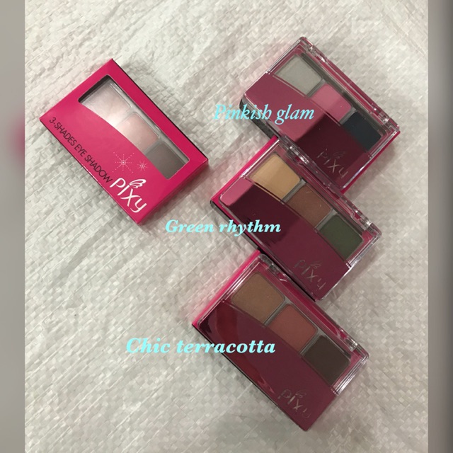 Chic terracotta green rhythm pinkish glam jual pixy 3 shades eye shadow.